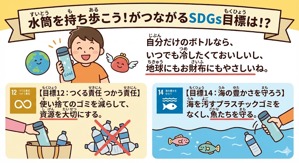 自分だけのボトルなら、いつでも冷たくておいしいし、地球にもお財布にもやさしいね。