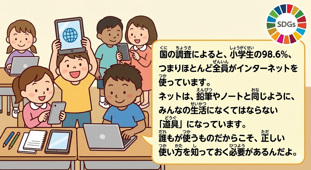 ネットは、鉛筆やノートと同じように、みんなの生活になくてはならない「道具」になっています。