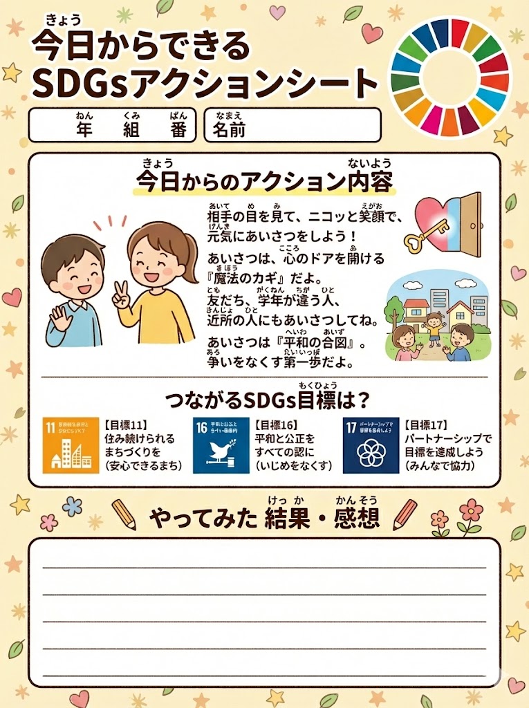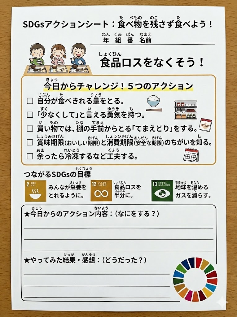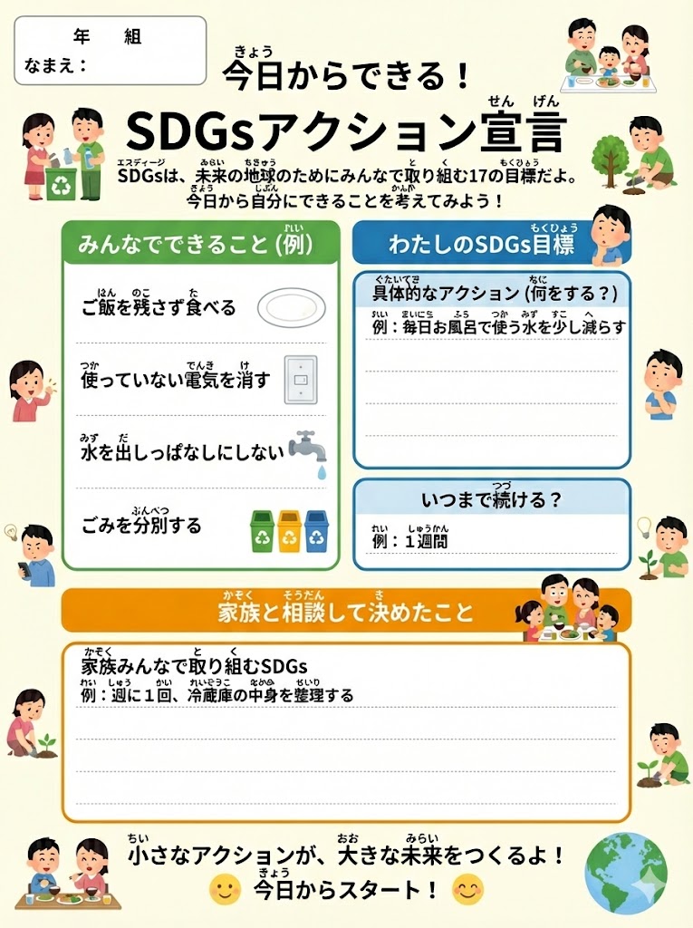 今日からできるSDGsアクションに、みんなで挑戦できる特製ワークシートだよ!