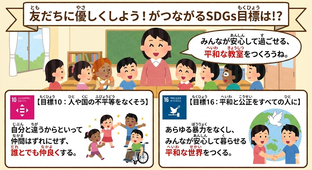みんなが安心して過ごせる、平和な教室をつくろうね。