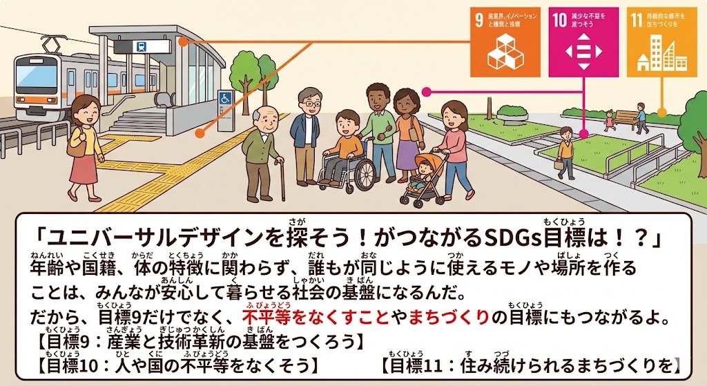 だから、目標9だけでなく、不平等をなくすことやまちづくりの目標にもつながるよ。